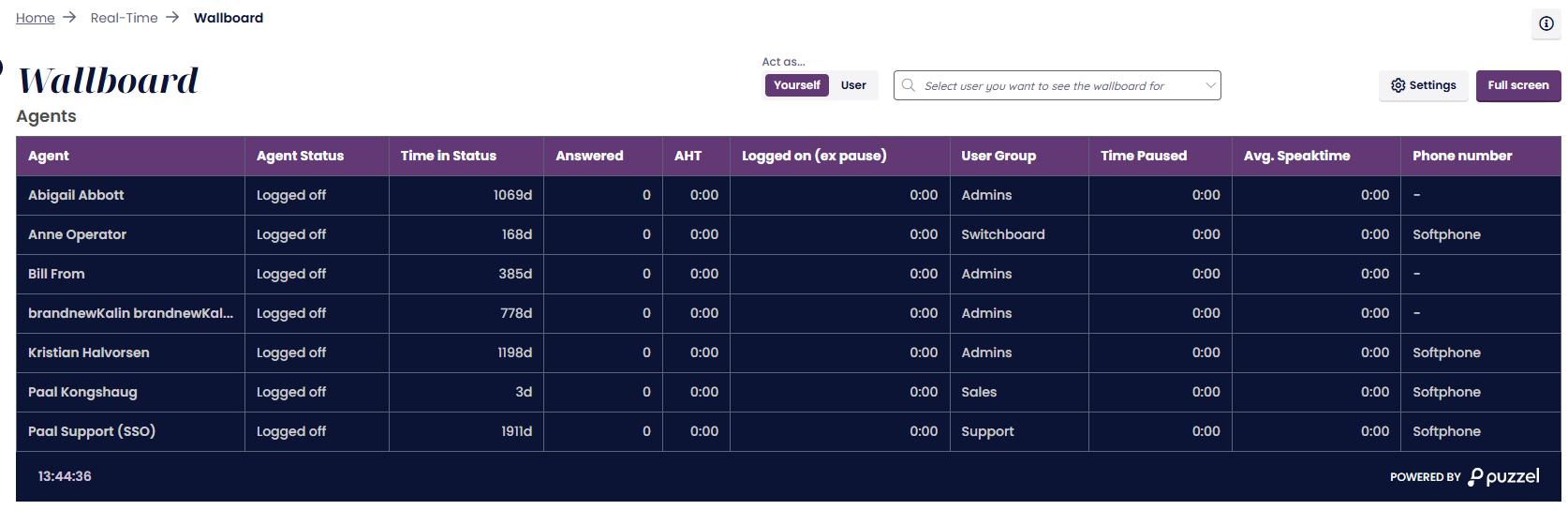 Wallboards are used to show information per display queue and/or agent information on a big screen, so that everyone in a room can have a clear overview. The information in a wallboard is as default updated every 10th second.