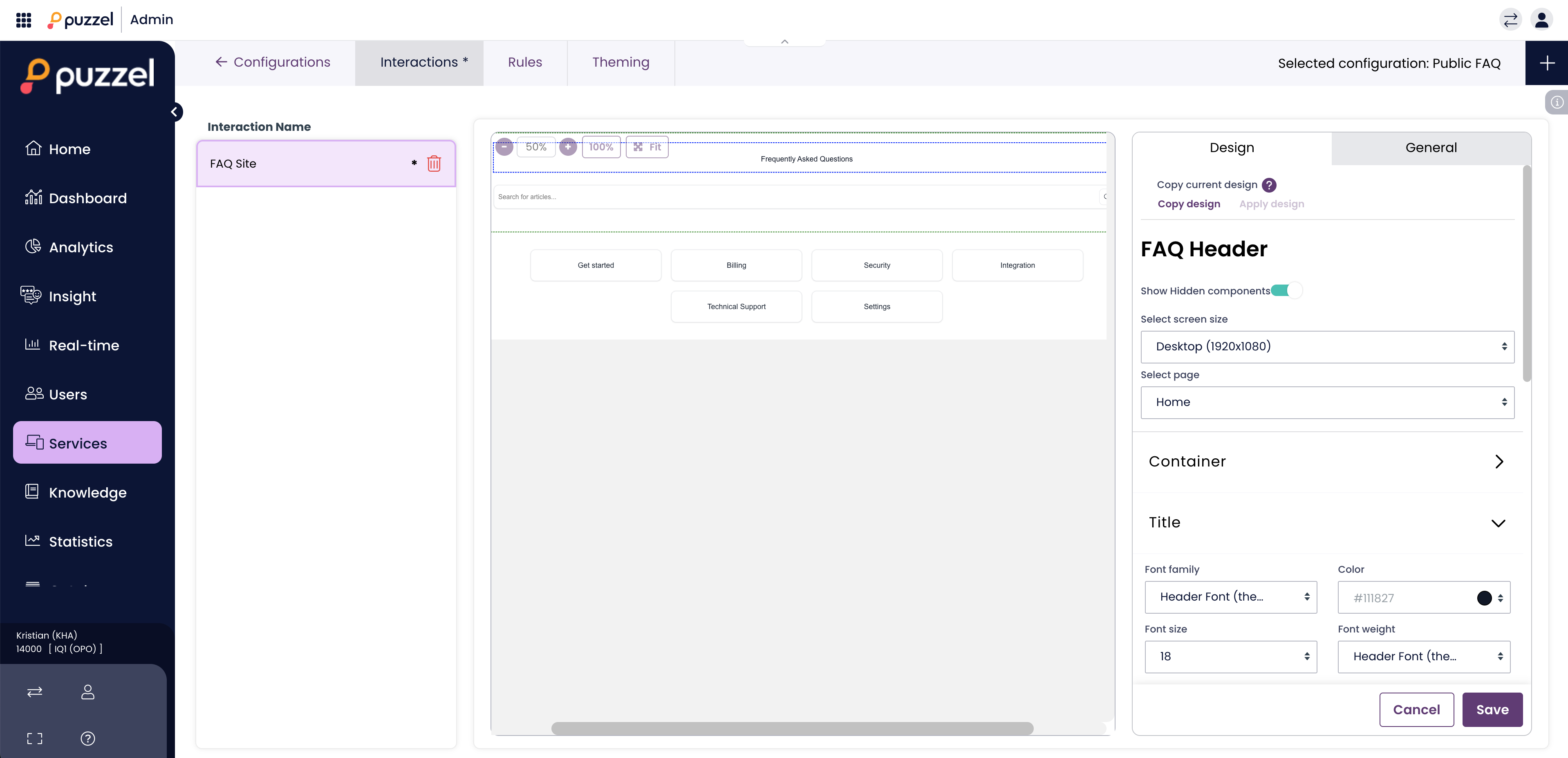 The Puzzel Public FAQ allows you to create a dedicated, searchable help center for your customers. You can customize the layout, branding, and content visibility to match your company’s needs. All of this is done in the Puzzel Contact Centre Chat administration interface.