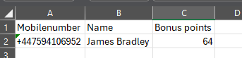 The first row is always the header, and the first field shall always be the mobile phone number.