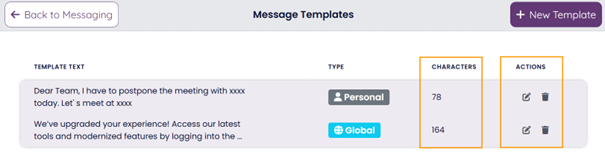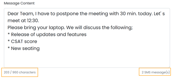 Track your character count and total message volume using the real time counter situated below the content area.
