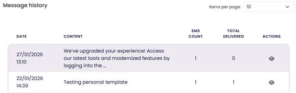 When message is sent, you will be redirected to *Message Dashboard’ where you can view information about your sent messages.