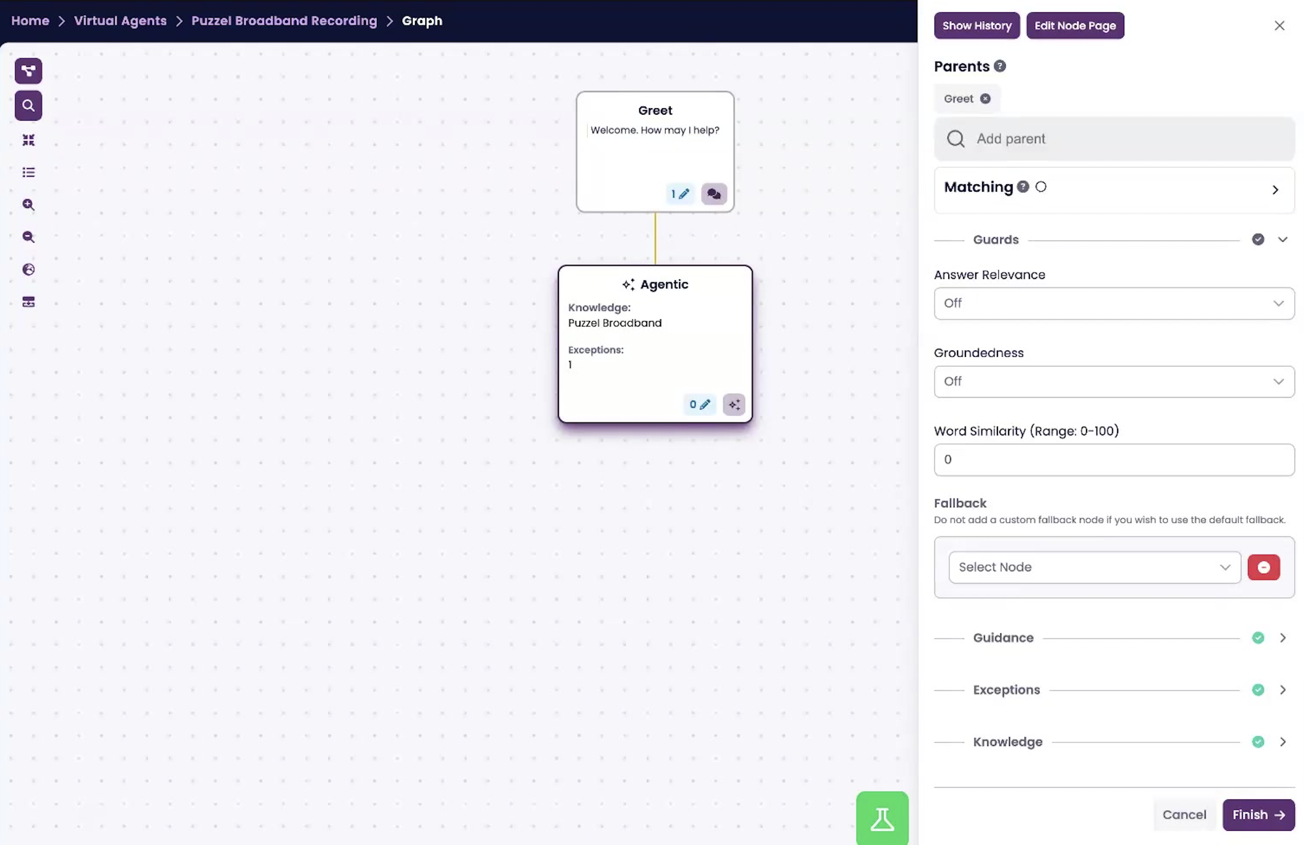 1. Click Finish to save the Agentic node.
