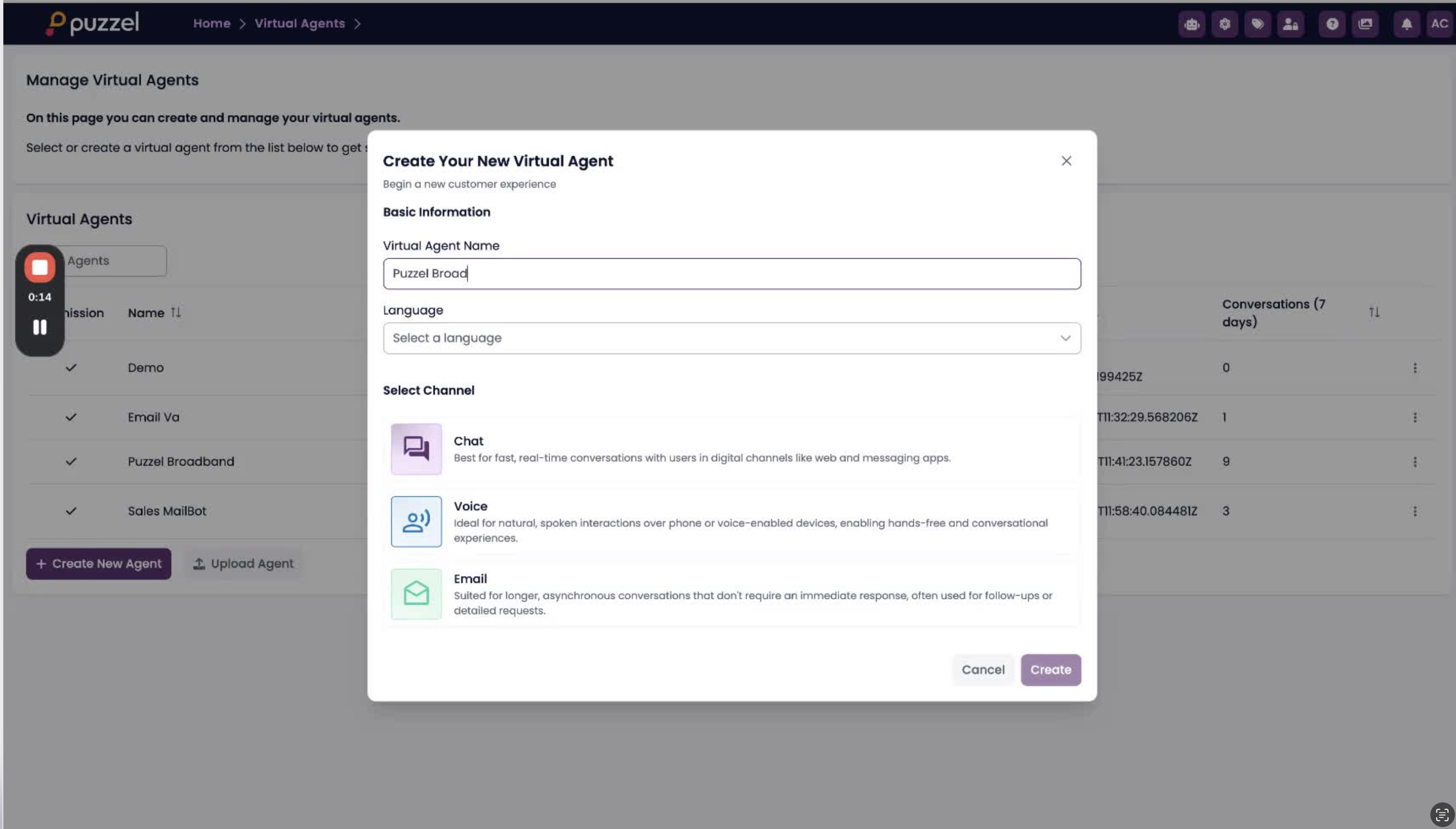 2. Enter a clear virtual agent name.