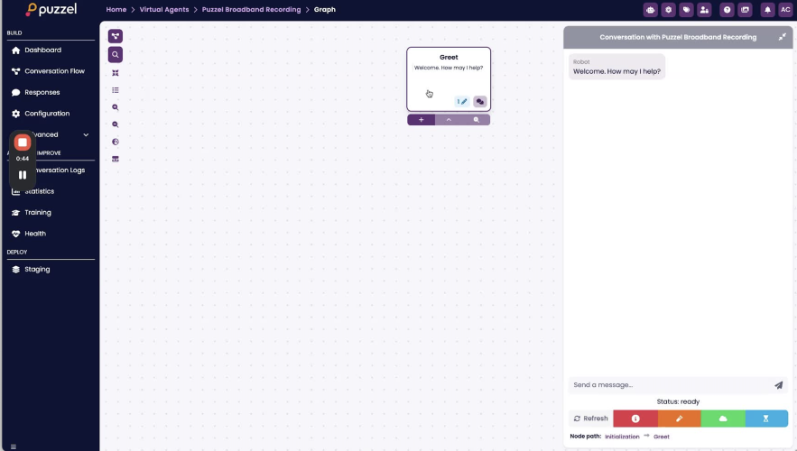 5. Click Create to open the BotStudio graph with a default Greet node.