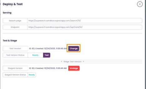 When your new version number appears under Staged Version and the status shows Ready, your search engine is now live.