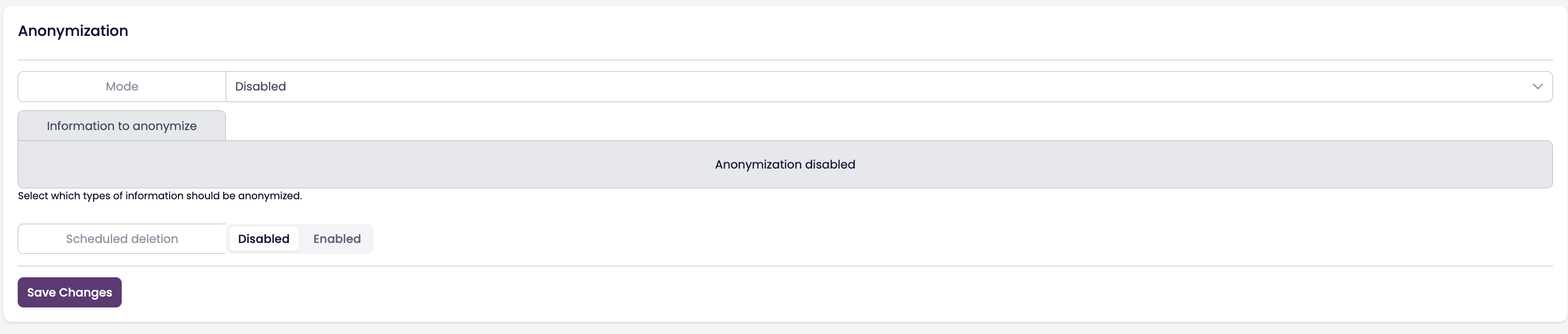 You can enable or disable anonymization, choose what types of information to anonymize, and schedule automated deletions.