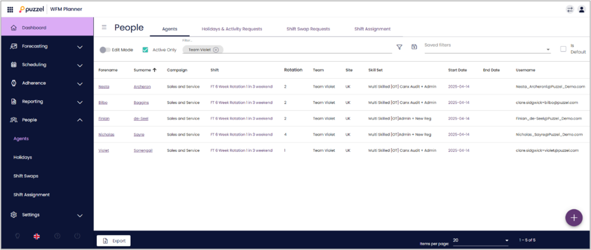 1. You need to go to People -> Agents option in the left menu. This will display all the users in the system.
